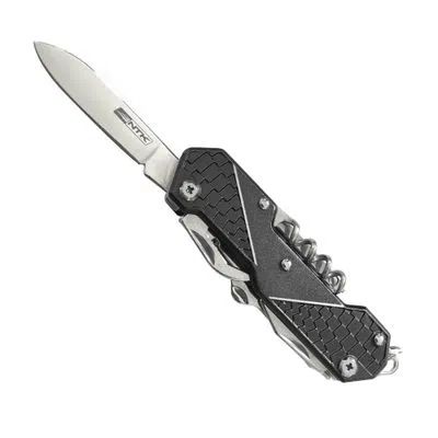 Dentre essas funções estão, punção, lixa, raspador, chave philips, argola, chave de fenda, abridor de garrafa, tesoura, lâmina serrilhada, descamador, abridor de lata e saco rolha.