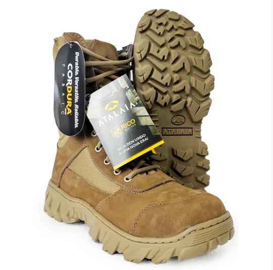 • Amplamente utilizado pelos maiores exércitos do mundo, como o norte-americano e os europeus, o Cordura® 1000 é até 10 vezes mais resistente que os tecidos convencionais. Este material é aplicado em áreas estratégicas para oferecer máxima proteção contra abrasões, cortes e rasgos, prolongando significativamente a vida útil do coturno. Além disso, sua leveza e flexibilidade garantem liberdade de movimento, sem comprometer a durabilidade.