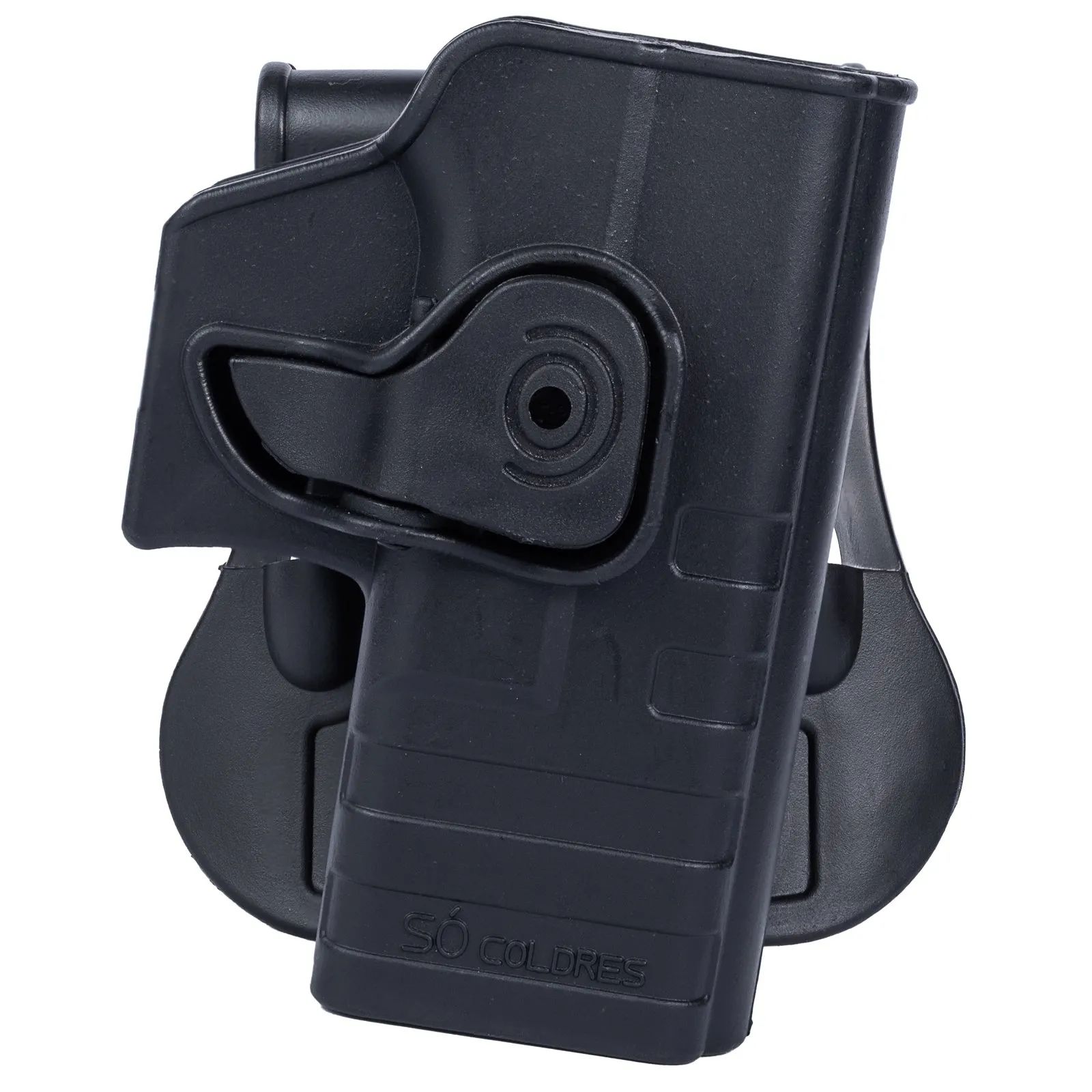 Coldre para pistolas Glock G19/23/25 com trava e regulagem de ângulo de saque.