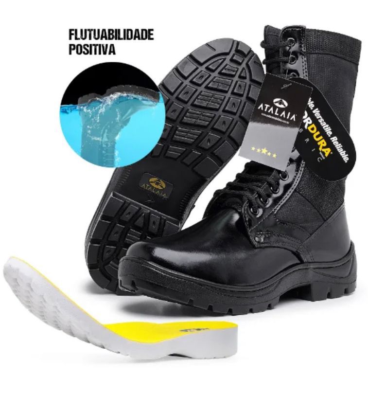 • Extra leve em PU Militar com flutuabilidade positiva, colado e costurado ao cabedal.
